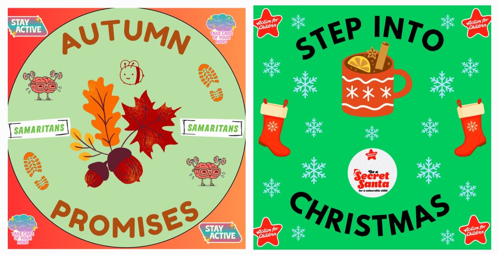 I have been running these activity challenges for three years now and this past year we have supported Age UK, Mind, Bloody Good Period, National Autistic Society, National Deaf Children’s Society, Sands Baby Loss Charity, and MacMillan Cancer Support and more.