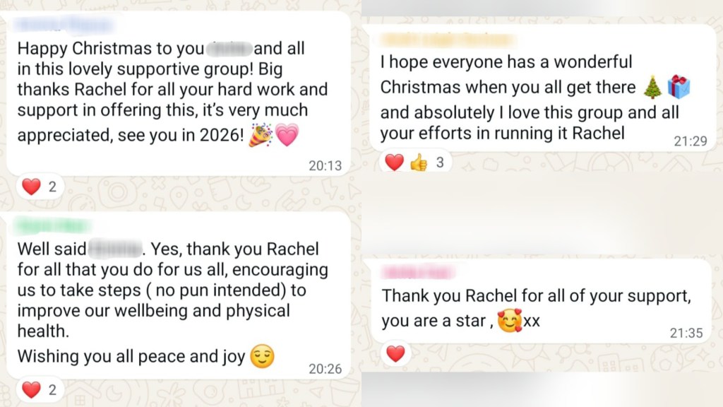 “I have LOVED being part of the challenges this year. It’s been such a profound 6 months in my health journey, since changing my diet due to my eczema, and continuing with my activity I have noticed some big changes to my health, the weightloss is the noticeable thing on the outside but on the inside I’ve also noticed that my cardio and breathing has improved so much and I have much more energy when out and about, walking up the stairs and doing day to day chores. I still have my slower days but I find that I’m much more eager to get back out and getting those steps in. Thank you Rachel” – Feedback about our activity groups from Gina, June 2025